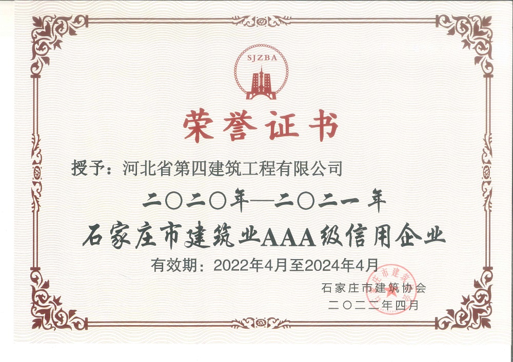 河北四建:全国建筑业AAA级企业