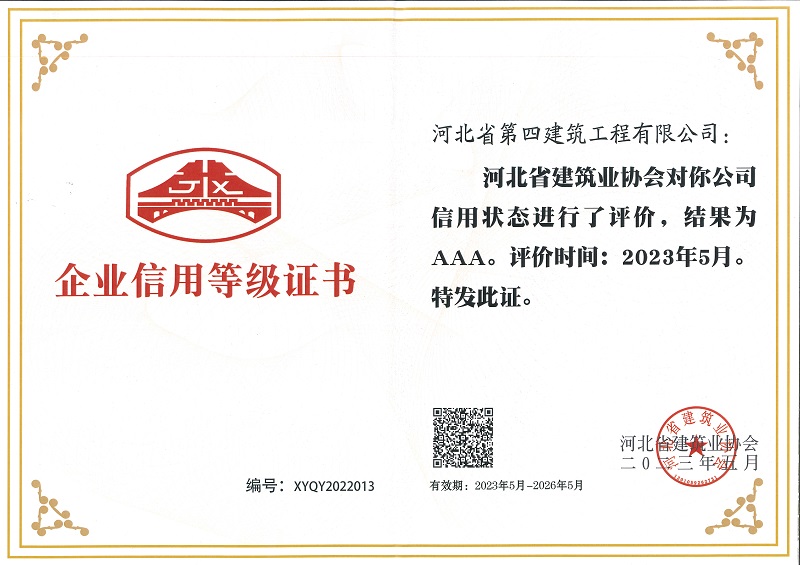 2023年河北省建协AAA信用等级证书